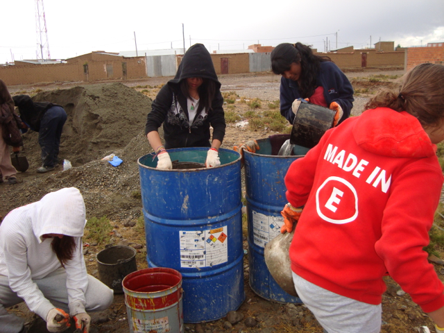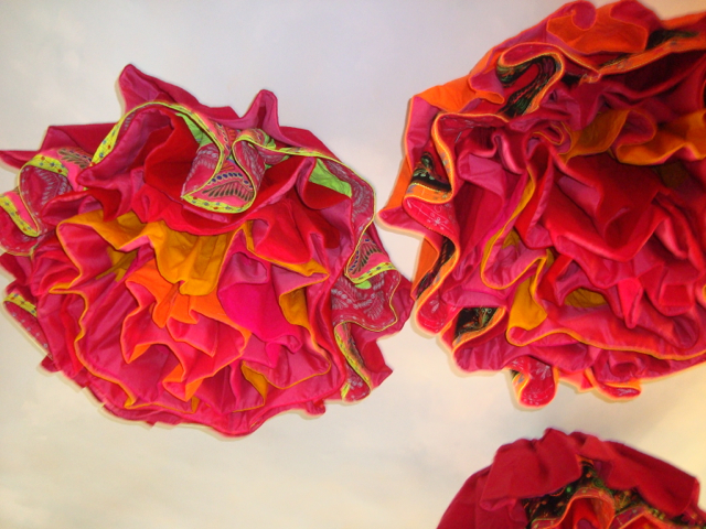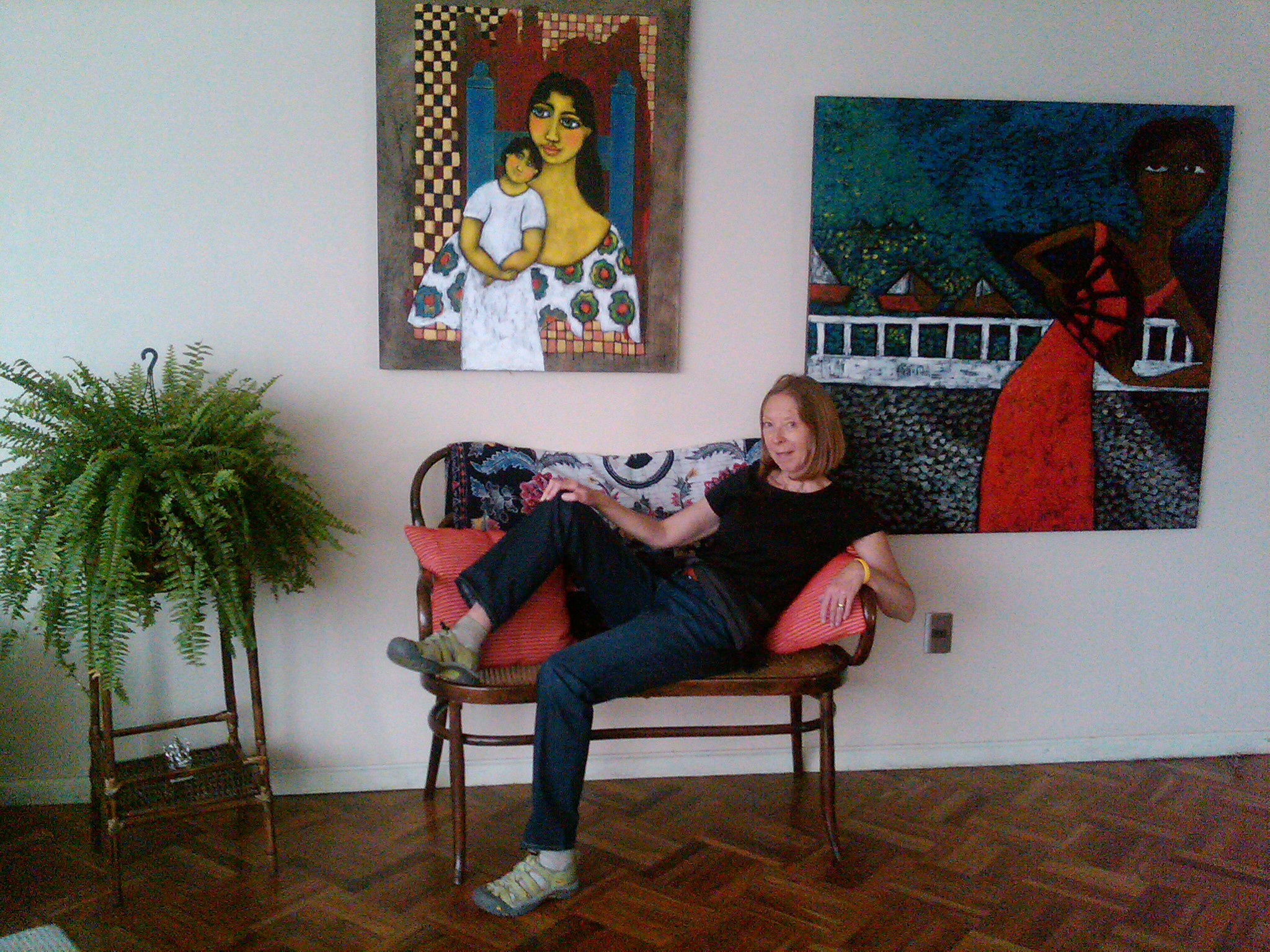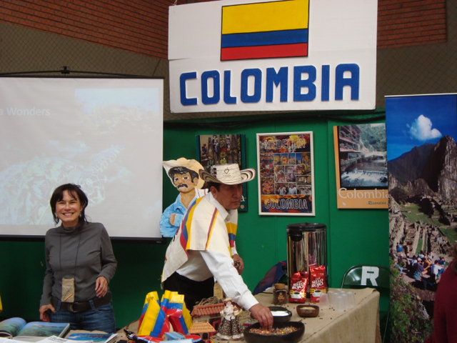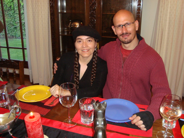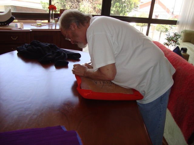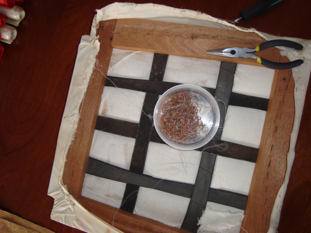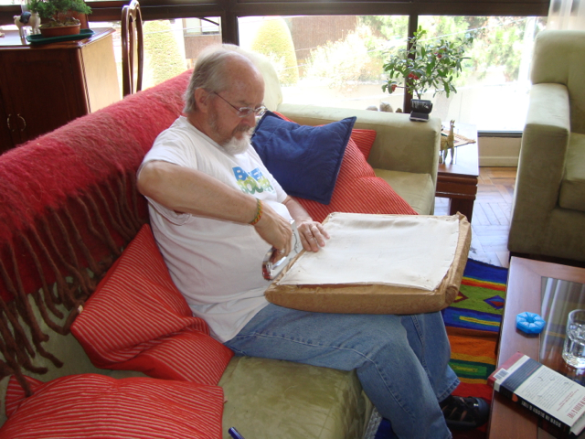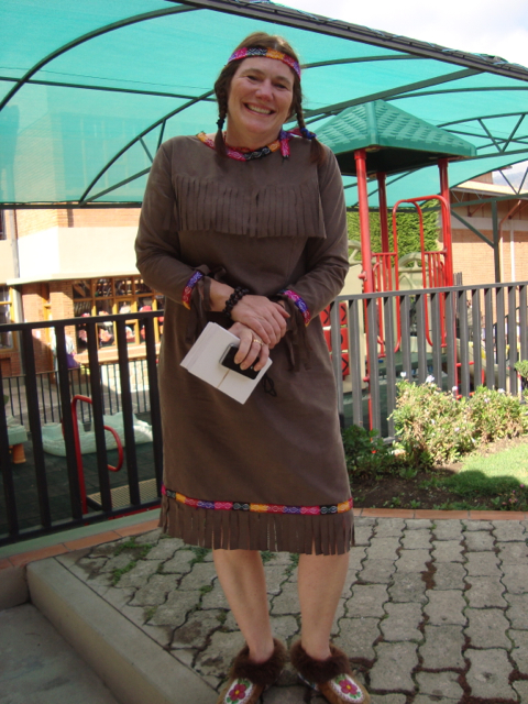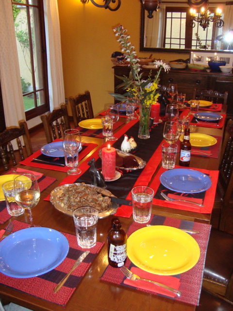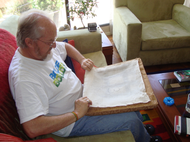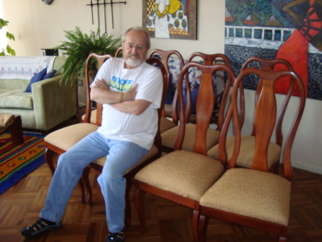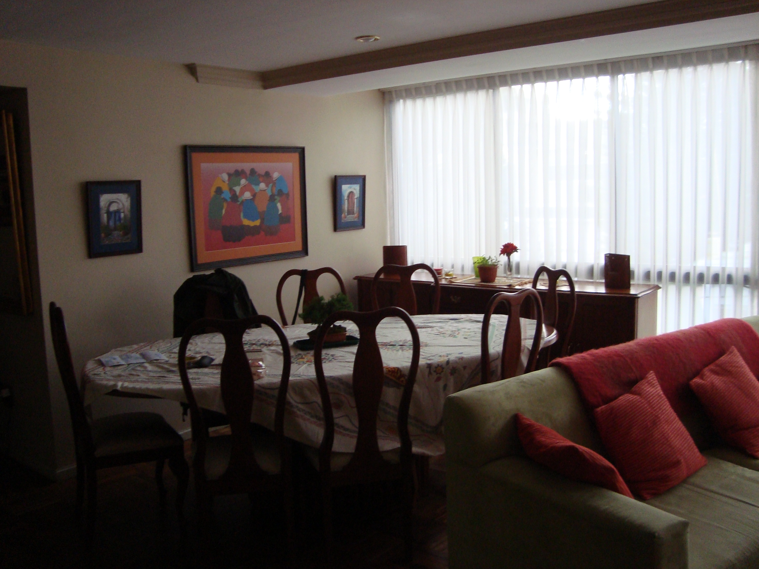 We’re finished! We did it! Our weekend project only took two days to recover 8 dining room chairs and 4 breakfast table chairs. Our school would not assist us with a recovering project, so . . . as we had already decided we could never sit on ANY of the dining room chairs (we’ve been here over a month), we needed to take on this project. On Friday I went with a group to the fabric district way uptown by taxi (50 Bolivianos–we paid way too much!). I found fabric for our dining room chairs and then we proceeded on down the hill to the Calle Sarganaga just off the Witches’ Market to purchase some rugs to brighten our apartment space. The chair coverings are beautiful now; however, the seat coverings surely were disgusting while taking off the old. How the school expected us to use these chairs was beyond our imagination–we didn’t. Now we’re happy and will be ready for company on Christmas Eve! 🙂